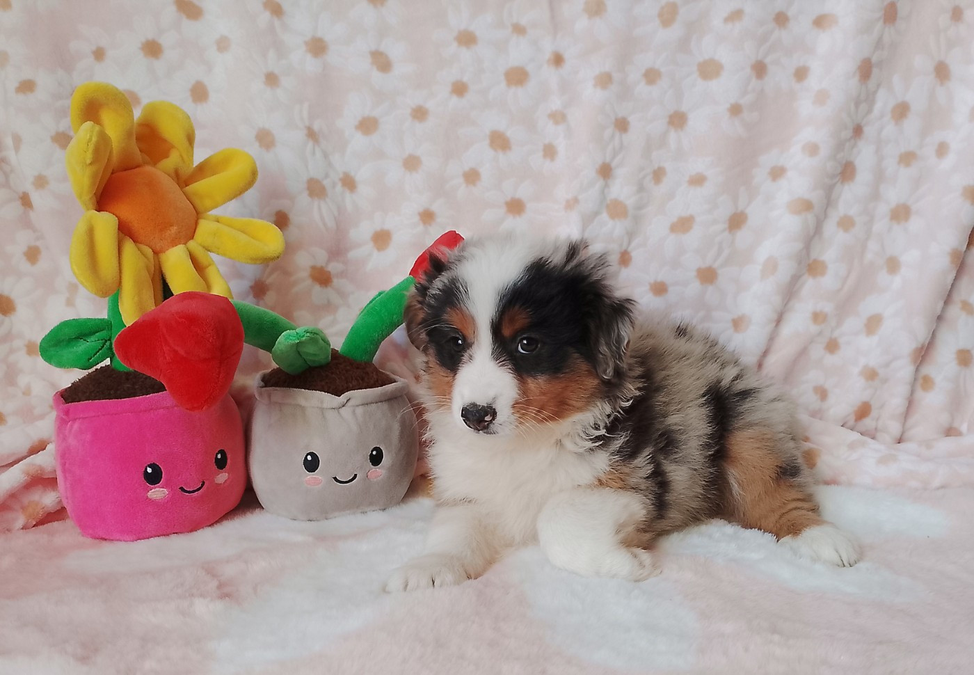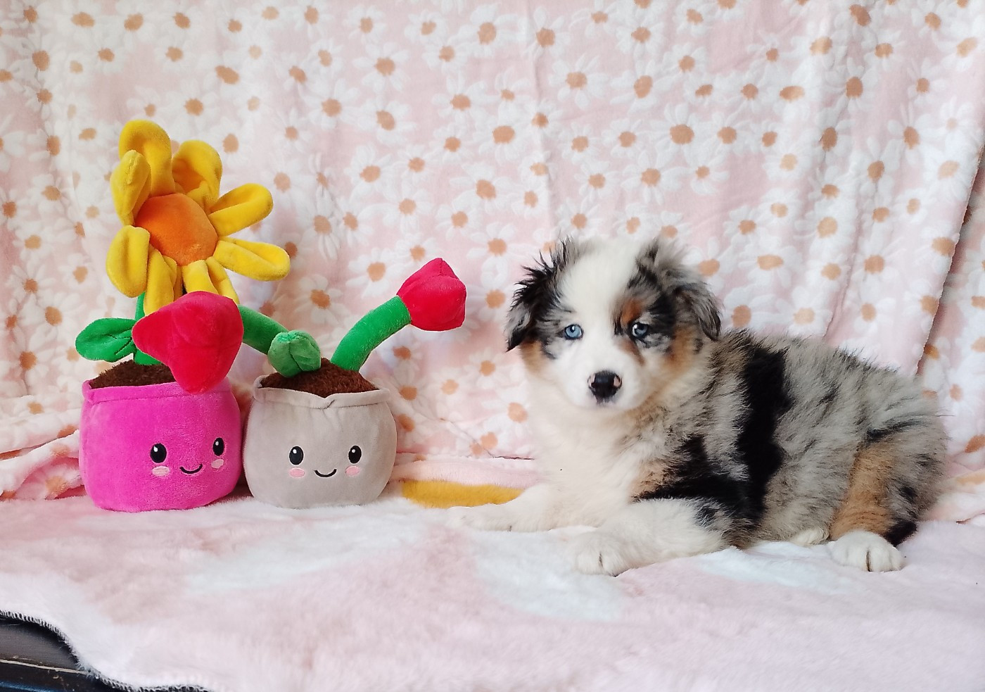 Ce petit mâle bleu merle est une véritable boule d'amour : toujours de bonne humeur, il se montre extrêmement sociable avec les humains comme avec ses congénères. C est un compagnon équilibré, câlin et attentif, qui ne demande qu'à partager votre quotidien avec douceur et complicité. c'est choisir un compagnon aussi intelligent qu'attachant. Ce petit chien dynamique saura vous séduire par son regard unique et son tempérament joyeux, idéal pour une vie de famille active.